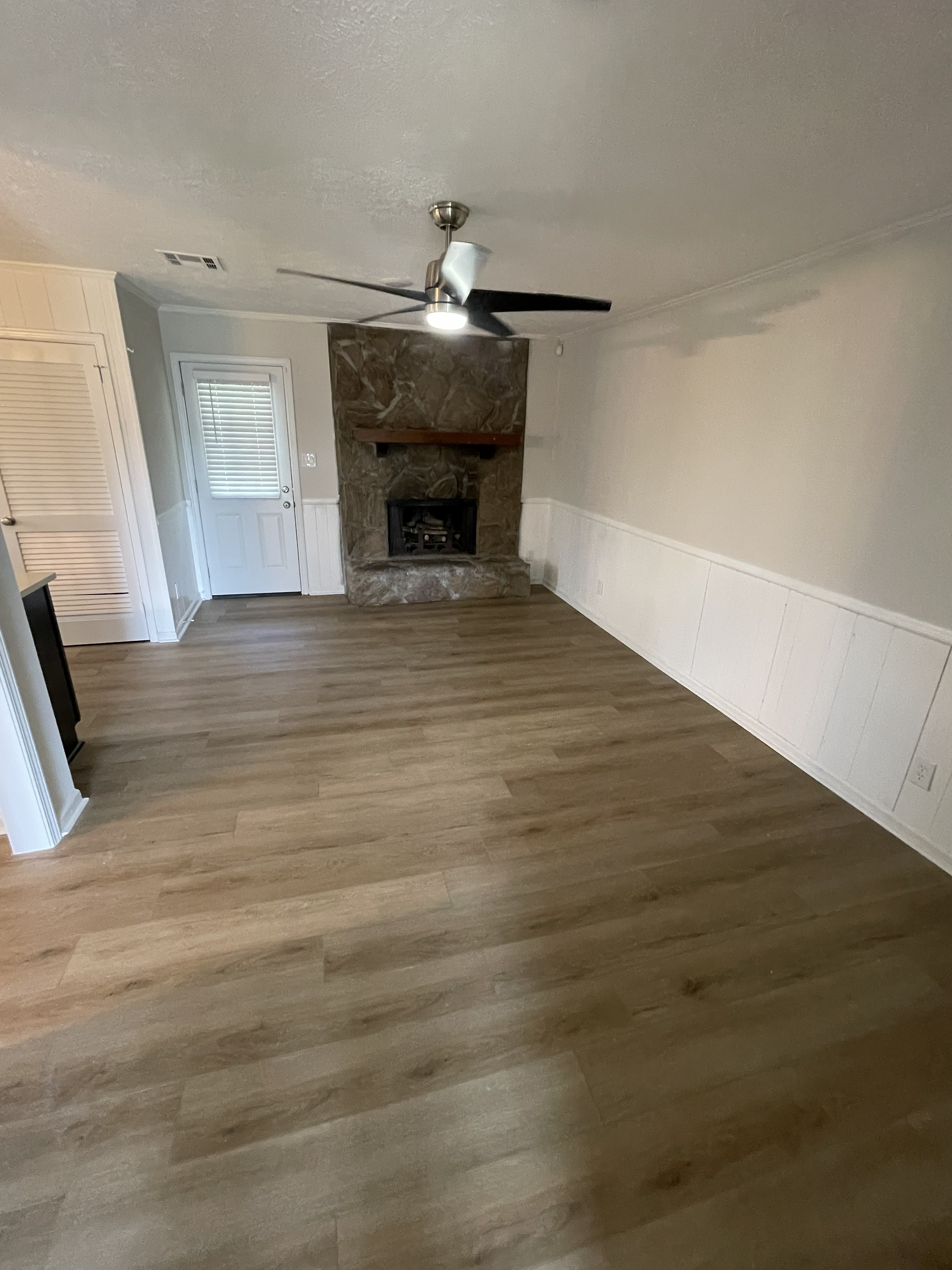 Electric Stove, Refrigerator, Dishwasher, Washer/Dryer Connection(Electric), Fireplace(Wood), Ceiling Fans, Central Heat(Gas), Central Air, Vinyl