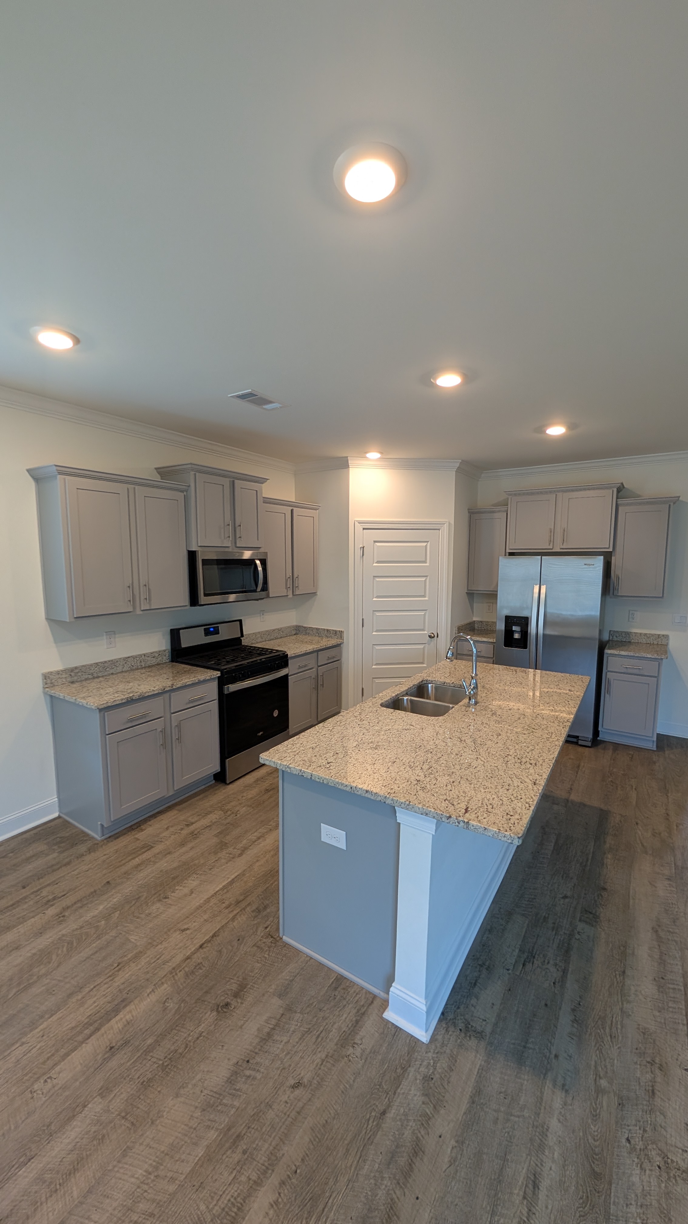 The kitchen is a cook's dream with the large island and plenty of cabinets and countertops of granite.